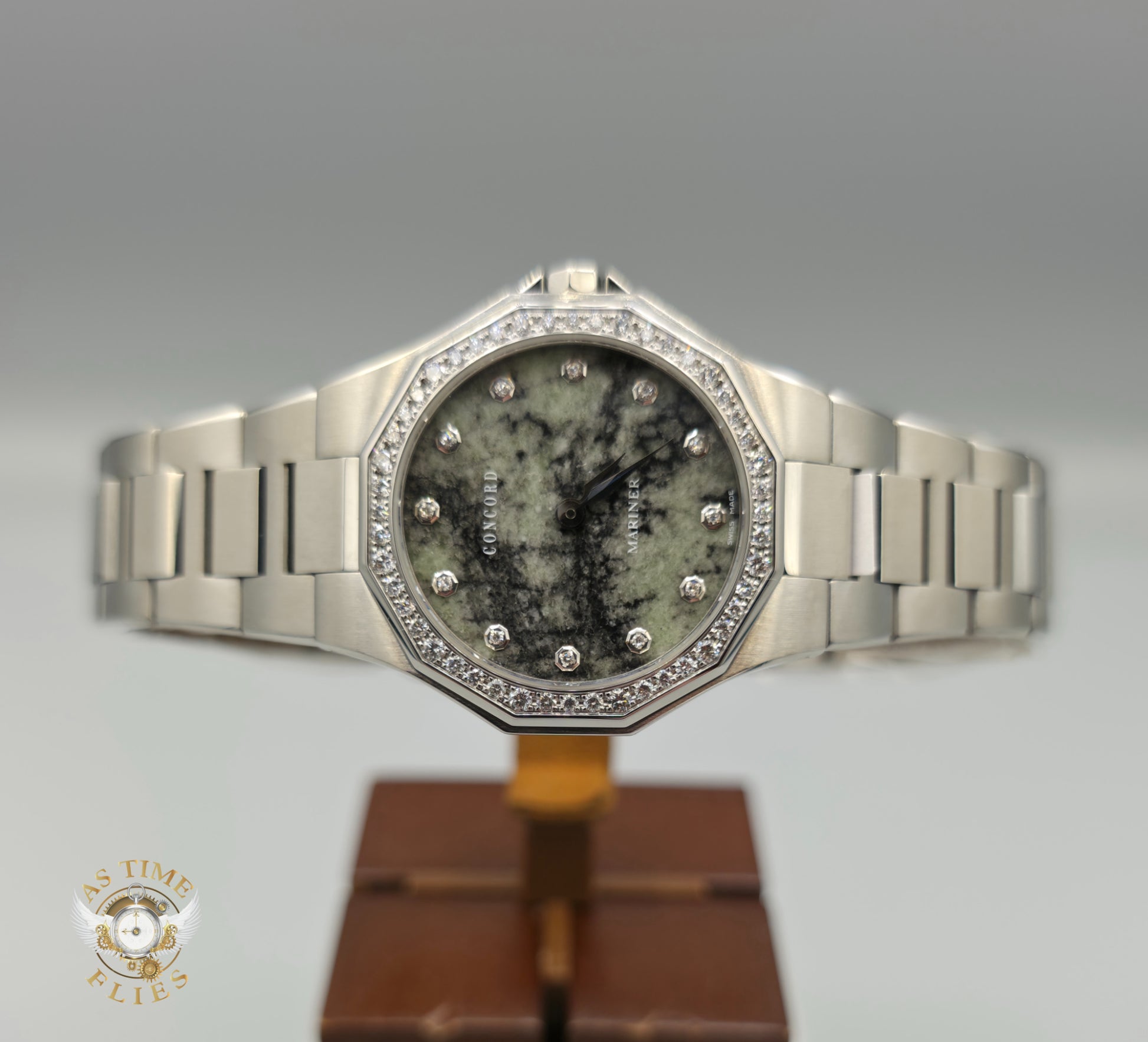 Executed in stainless steel with an integrated bracelet, the Mariner wears like a piece of fine jewelry rather than a conventional sports watch. Powered by a Swiss automatic movement and finished with Concord’s characteristic precision, Ref. 14.A2.1882 is quietly confident and inherently distinctive—a piece for collectors who value rarity, materiality, and refined understatement over overt display.