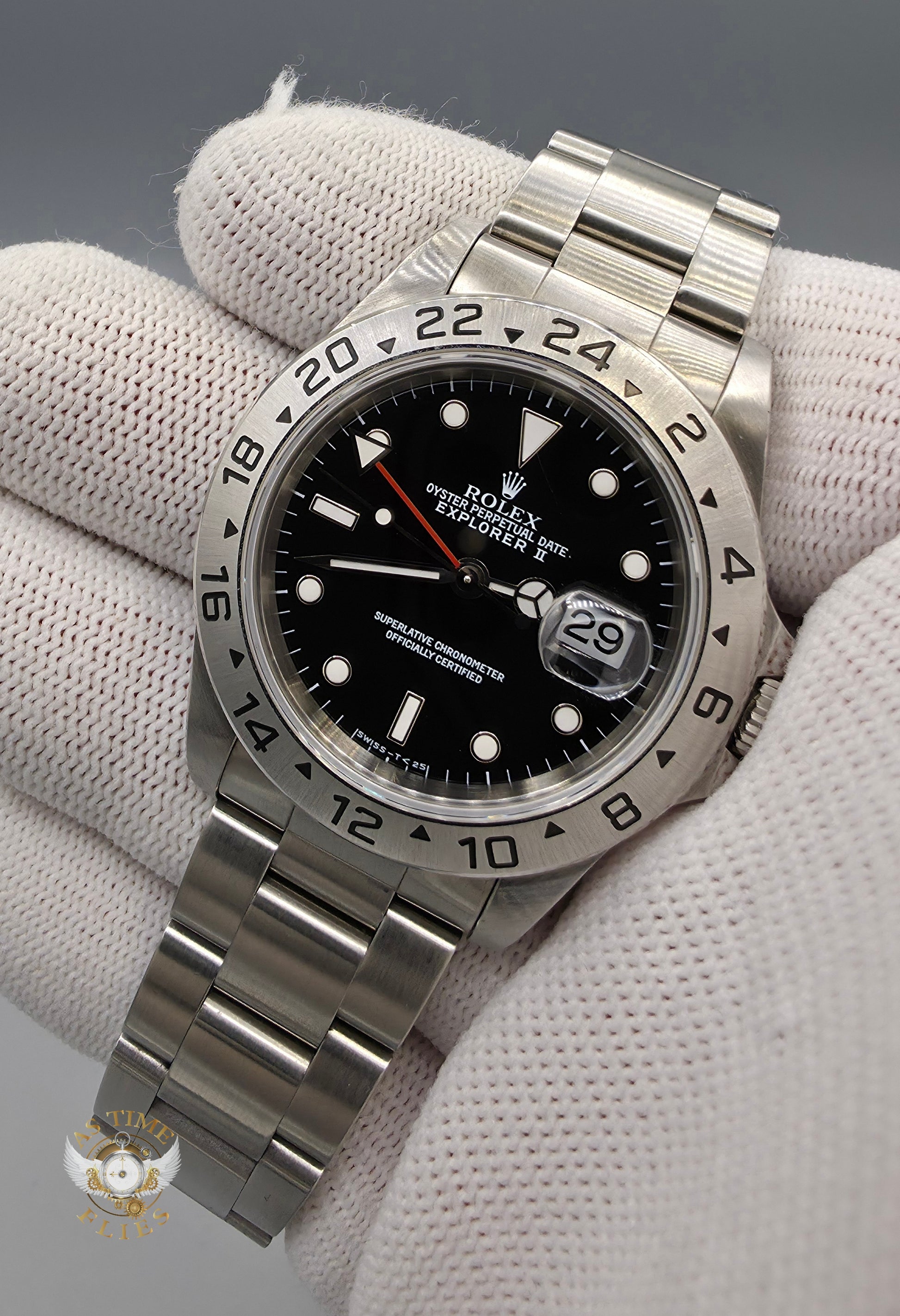 The Rolex Explorer II Ref. 16570 is one of the most purposeful and understated professional models in the modern Rolex catalogue, originally conceived for explorers, spelunkers, and polar expeditions where day and night can blur into one. Produced from the late 1980s through 2011, the 16570 represents the final evolution of the classic 40 mm Explorer II before the jump to the larger 42 mm case, making it especially appealing to collectors who value balanced proportions and traditional tool-watch design.