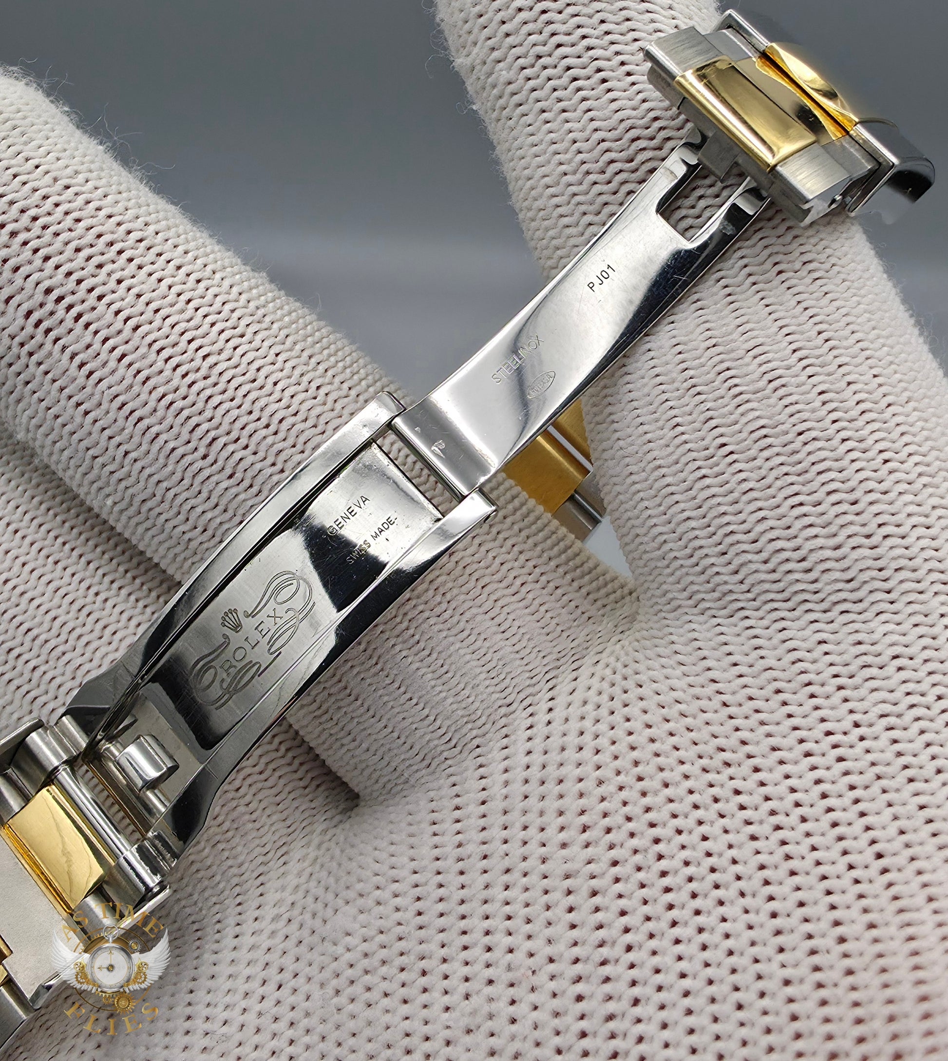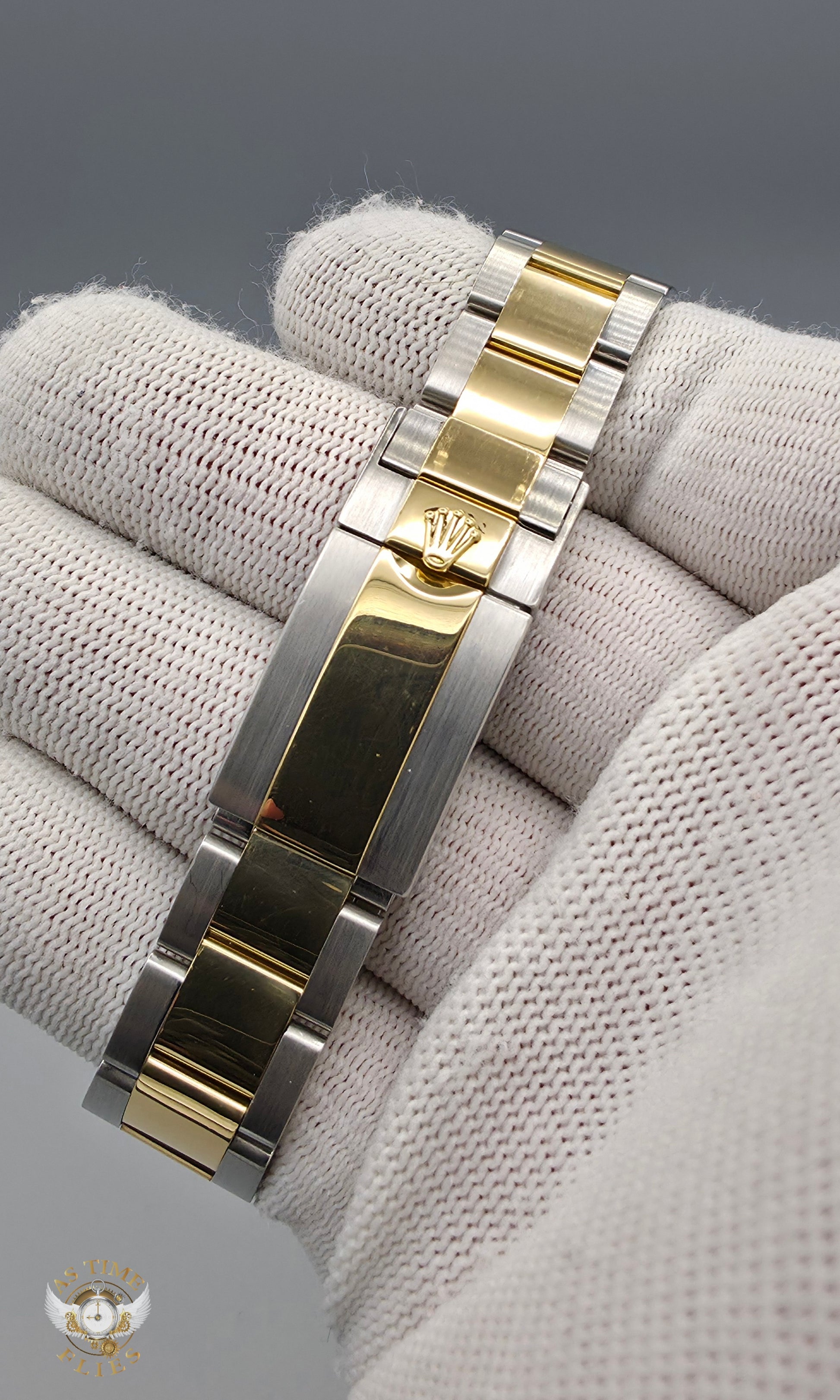 The solid Oyster bracelet, with polished yellow-gold center links and brushed steel outers, strikes a refined yet sporty balance. It is secured by Rolex’s Oysterlock clasp with Easylink extension, allowing for quick micro-adjustments to ensure comfort throughout the day. The overall presence is substantial yet wearable, with the 40mm case offering versatility across a wide range of wrist sizes.