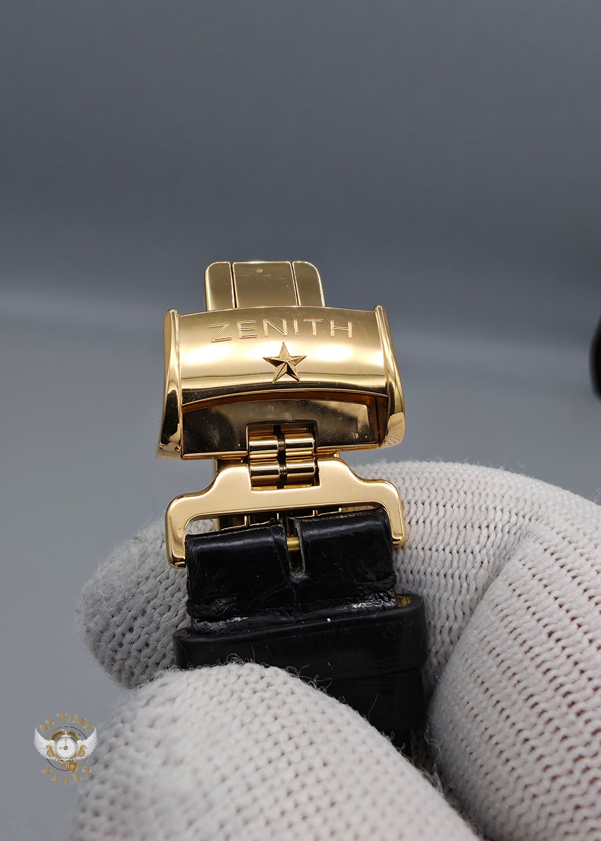 The Zenith Elite Captain Ref. 18.2120.685/01.C498 is a distinguished example of classical Swiss watchmaking, blending elegant aesthetics with meaningful mechanical depth. Crafted in 18k rose gold, the case exudes warmth and refinement, with softly curved lugs and polished surfaces that reflect Zenith’s mastery of proportion. It is a watch designed for those who appreciate restraint—luxury expressed through balance, precision, and enduring design rather than overt display.
